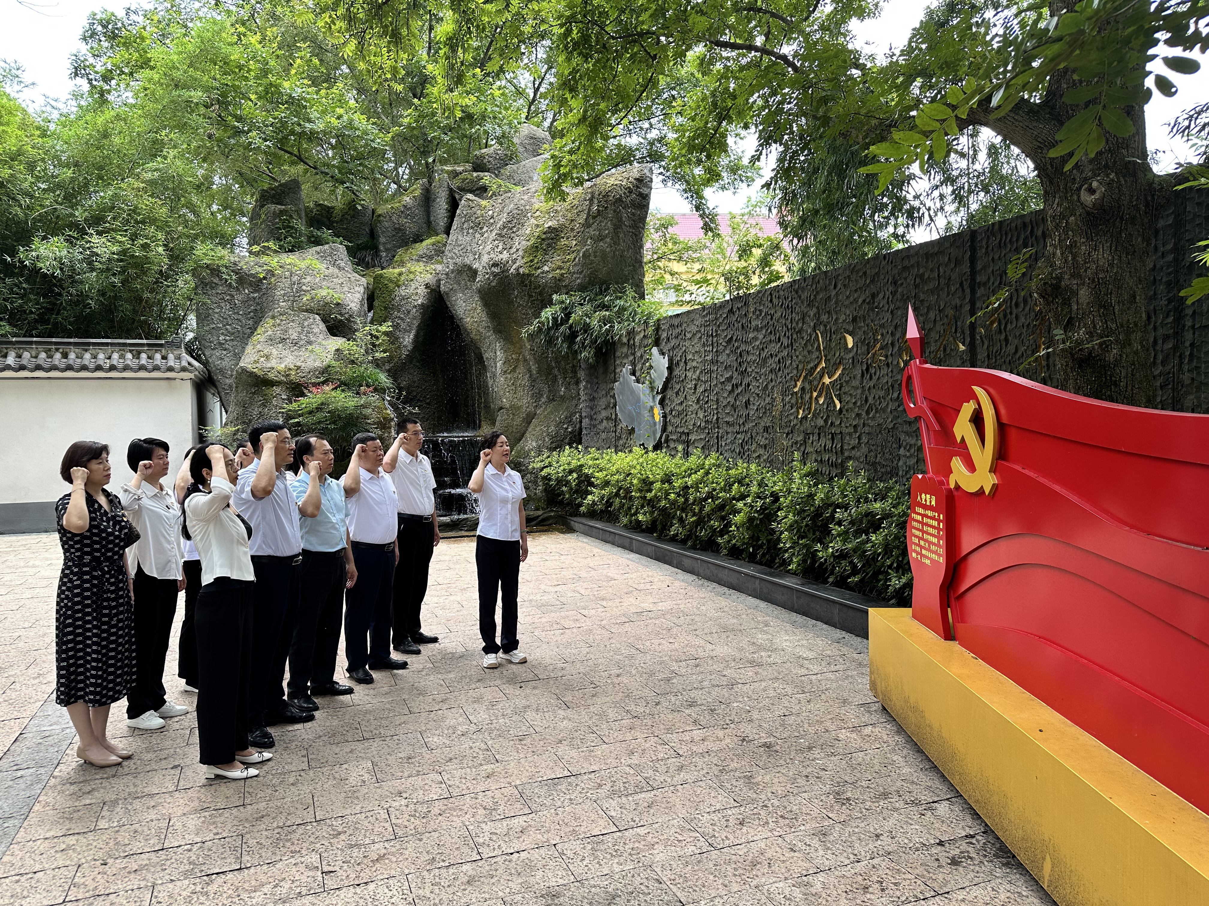 全體黨員同志在黨支部書記的領(lǐng)誓下,面向黨旗,肅穆站立,高舉右手,重溫入黨誓詞、重拾入黨初心。