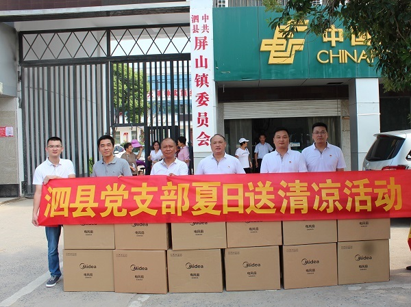 一個(gè)風(fēng)扇,一瓶清涼的礦泉水,一句句貼心的問(wèn)候,恰似夏日里的一縷縷涼風(fēng),沁人心脾。8月1日上午9點(diǎn),烈日炎炎,熱氣蒸騰,讓人倍感炎熱,中共安徽鹽業(yè)房地產(chǎn)開(kāi)發(fā)有限公司泗縣黨支部書(shū)記余海帶領(lǐng)公司黨員和入黨積極分子赴泗縣屏山鎮(zhèn)開(kāi)展黨建活動(dòng)。
