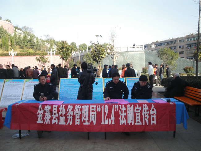 12月4日上午,在金寨縣法制宣傳教育領導小組辦公室統一組織下,金寨縣鹽務局與縣工商局、質監局、衛生局、食品藥品監督管理局等單位在縣城紅軍廣場擺放宣傳咨詢臺,開展一年一度的“12.4”法制宣傳日普法宣傳活動。