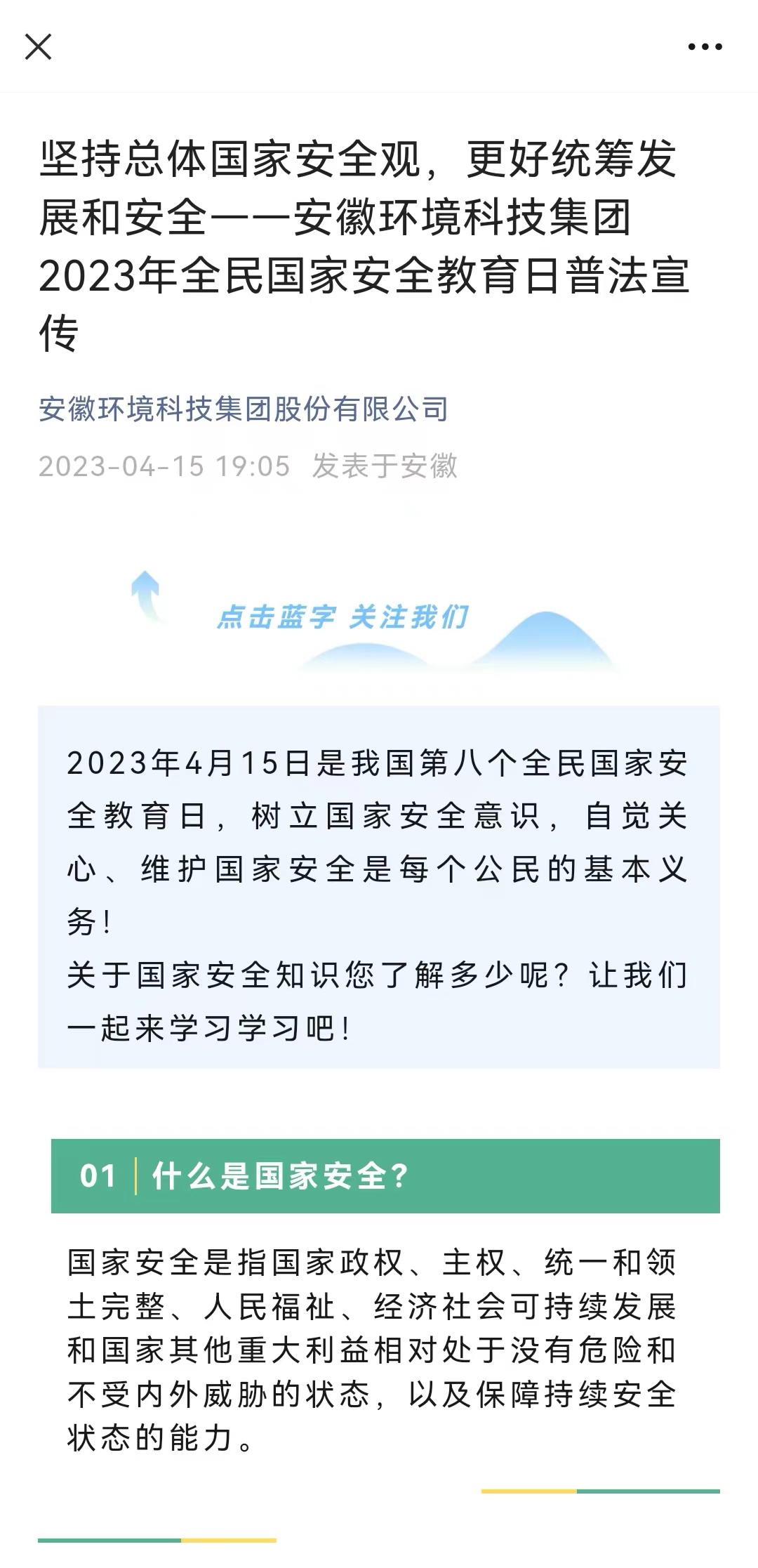 環(huán)境公司、發(fā)展公司、地產(chǎn)集團(tuán)在微信公眾號、官網(wǎng)政策法規(guī)平臺上傳國家安全相關(guān)法律法規(guī),在辦公場所張貼宣傳海報(bào)。