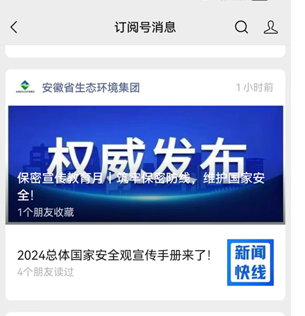 今年是習近平總書記提出總體國家安全觀10周年,4月15日是第九個全民國家安全教育日。根據安徽省國資委統一部署安排,集團公司迅速部署,積極組織開展以“總體國家安全觀·創新引領10周年”為主題的普法宣傳活動。