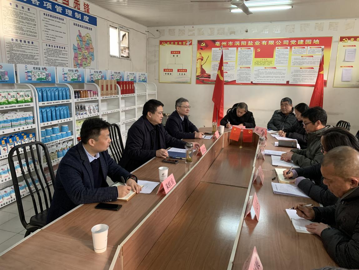 12月12日下午,省生態(tài)環(huán)境集團黨委書記、董事長羅太忠到渦陽縣鹽業(yè)公司宣講習近平總書記考察安徽重要講話精神。