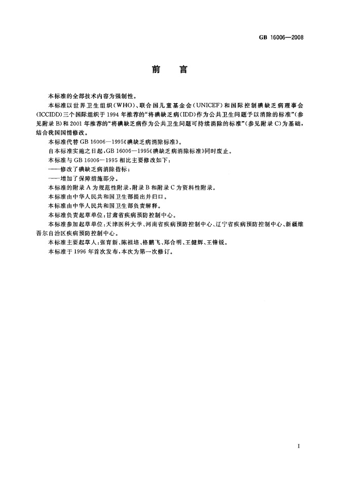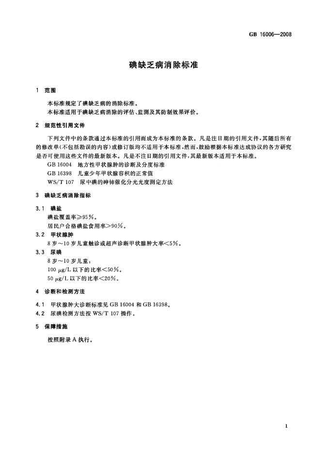 衛生部國標委發布GB16006-2008碘缺乏病消除標準