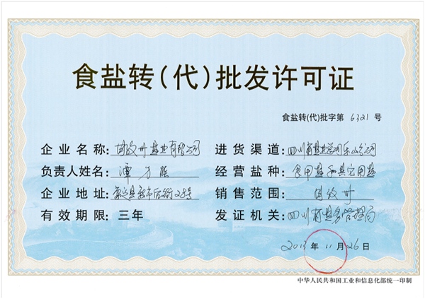 待解持有《食鹽批發(fā)許可證》的食鹽定點(diǎn)生產(chǎn)企業(yè)銷售渠道: