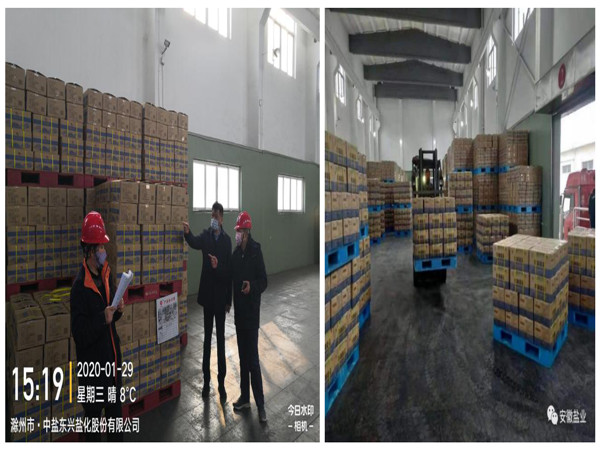 疫情如火,責(zé)任如山,充足的庫存是保障食鹽市場穩(wěn)定供應(yīng)的前提。為確保全省食鹽市場供應(yīng)不斷檔不脫銷,安徽鹽業(yè)發(fā)展公司積極響應(yīng)省鹽業(yè)集團(tuán)公司號召,未雨綢繆,早安排早部署。在中鹽東興鹽化股份有限公司的積極支持下,克服運(yùn)輸緊張、雨雪天氣、交通管制等不便因素,積極組織食鹽生產(chǎn)和調(diào)運(yùn)。同時積極協(xié)調(diào)安徽省新型冠狀病毒肺炎疫情防控應(yīng)急指揮部,緊急辦理了應(yīng)急物資調(diào)撥專車通行證,為疫情時期食鹽運(yùn)輸開辟了綠色通道,有力保障了民食工需。