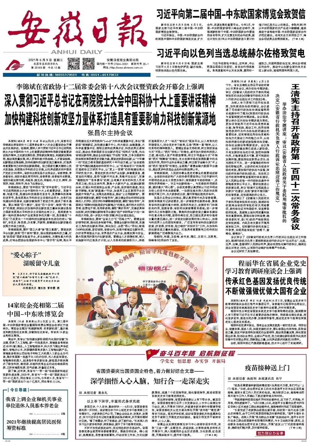 省屬企業黨史學習教育調研座談會6月8日召開,省委副書記程麗華出席會議。安徽新聞聯播和安徽日報頭版對此進行報道,一起來看: