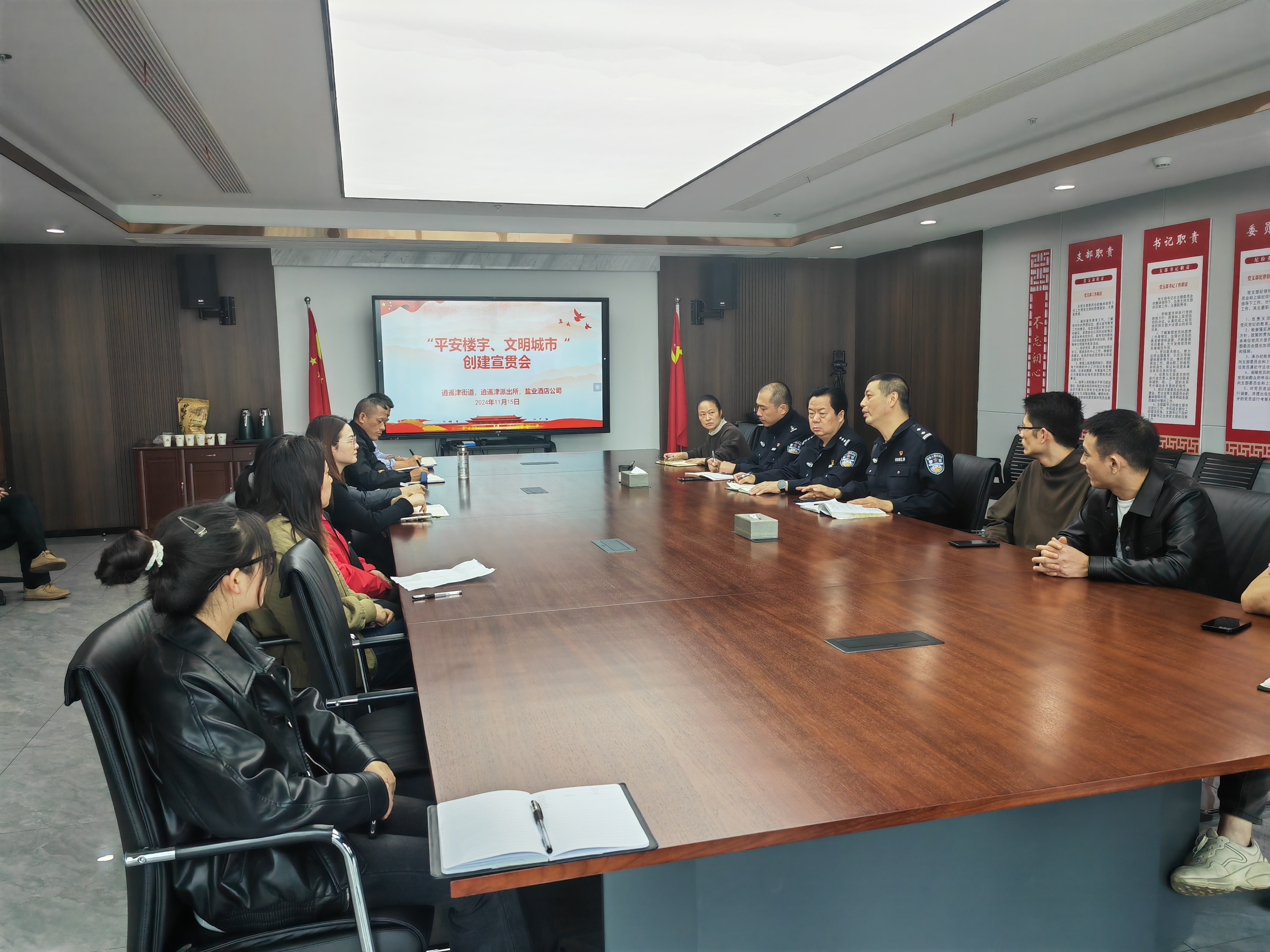 11月15日下午,酒店公司聯(lián)合逍遙津派出所、逍遙津街道及入駐項(xiàng)目大客戶在徽鹽安徽中心召開“平安樓宇、文明城市”宣貫會。